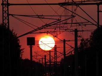 Keywords: sunset city railway station twilight evening sky sky afterglow evening sun atmosphere glow