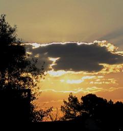 Keywords: sunset clouds dark edge gilt sky orange-gold glow trees