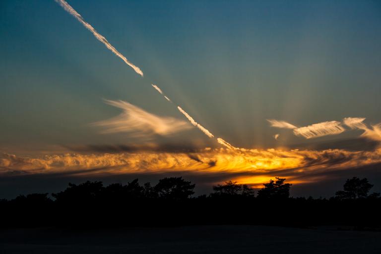 Keywords: sunset clouds sun evening heaven trees nature soester dunes
