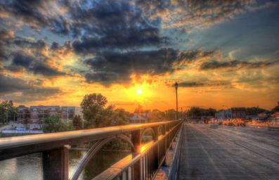 Keywords: sunset dusk road landscape town sky clouds bridge