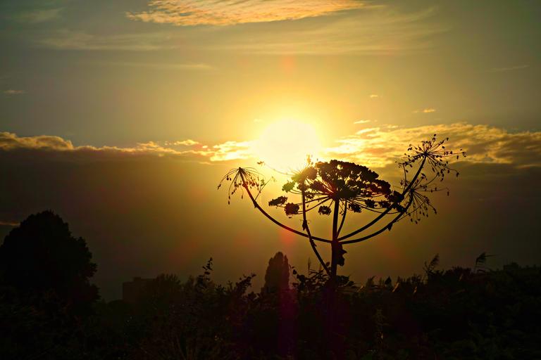 Keywords: sunset evening sky evening dusk silhouette hogweed sun setting sun