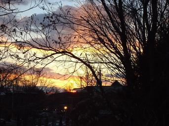 Keywords: Sunset in Summit NJ looking west through trees with clouds.JPG en Sunset view 2014-02-25 05 29 16 own Tomwsulcer cc-zero Uploaded with UploadWizard Sunsets of New Jersey Summit New Jersey