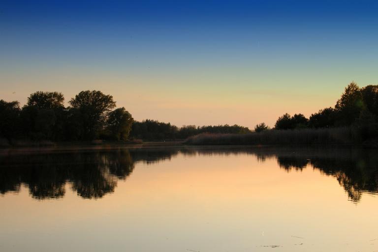 Keywords: sunset lake forest trees nature romance abendstimmung water mirroring landscape