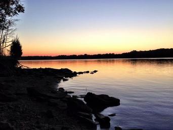 Keywords: sunset lake nature water sky landscape summer evening orange blue scenic shore outdoors view travel dusk