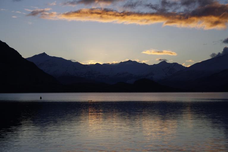 Keywords: sunset lake new zealand water sky nature landscape sun reflection evening cloud travel calm mountain horizon