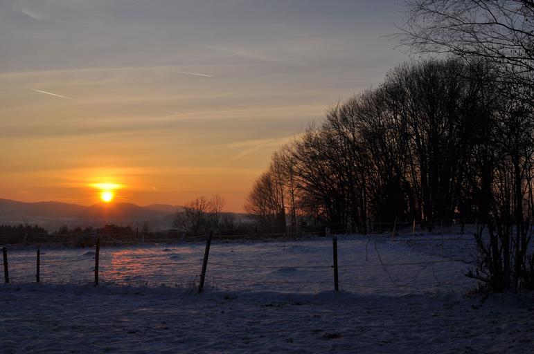 Keywords: sunset landscape sky nature twilight mood sun evening silhouette afterglow atmosphere rest beautiful tree evening sky still red orange abendstimmung yellow dusk evening sun back light clouds