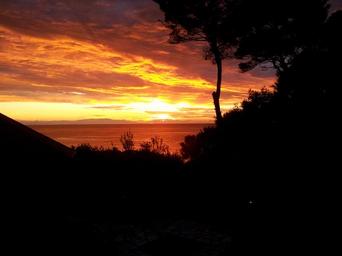 Keywords: sunset landscape sun sky red rays of sunshine nature the quakes sea clouds