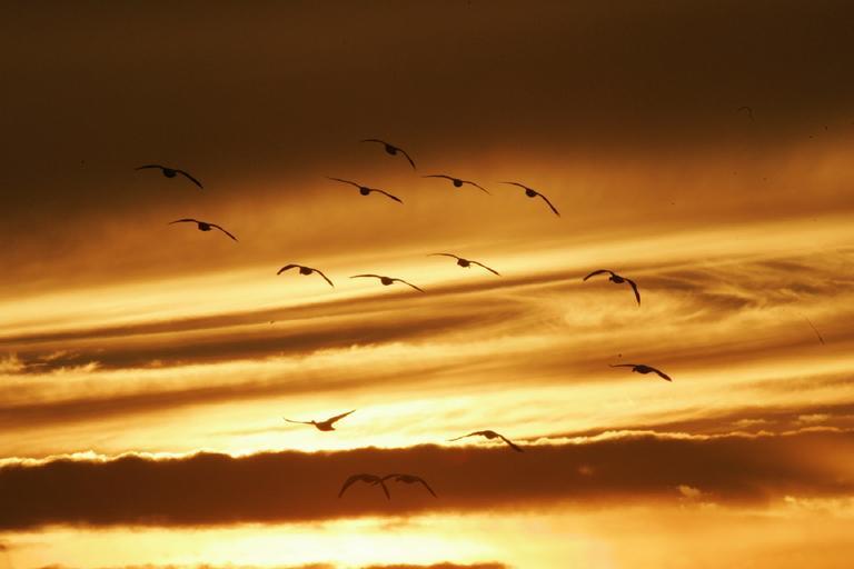 Keywords: sunset landscape twilight dusk sunshine sky colorful scenic birds silhouettes view outdoors clouds
