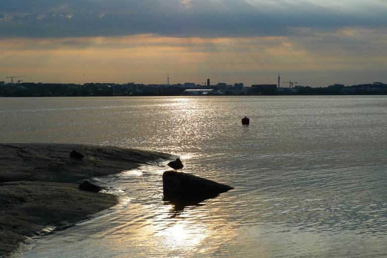 Keywords: sunset landscapes sky sea bay urban water clouds birds sleeping birds glittering water