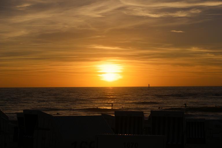 Keywords: sunset north sea sea sylt westerland beach background nordfriesland nature coast beach chair wadden sea holiday island abendstimmung