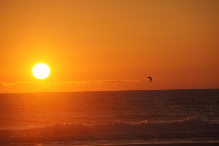 Keywords: sunset ocean wave sand beach biscarrosse atlantic sea relax rock coast surf blue rocky coast landscape sky gradually france bunker tropfem