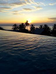 Keywords: sunset pool water evening sea thailand clouds water ripple glare on the water horizon
