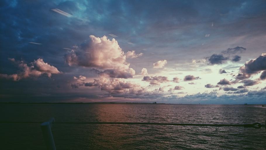 Keywords: sunset sea clouds ship purple violet north sea afterglow sun distant mood farbenpracht twilight atmosphere water evening sky abendstimmung beach lake nature landscape wave