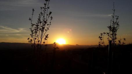 Keywords: sunset silhouette red mountain sun sky background image grass