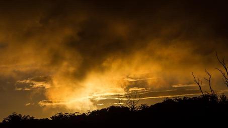 Keywords: sunset sky clouds orange grey dramatic storm australia horizon trees
