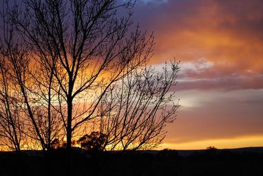 Keywords: sunset sky evening claret ash clouds sunset sky nature sun rural orange tree silhouette