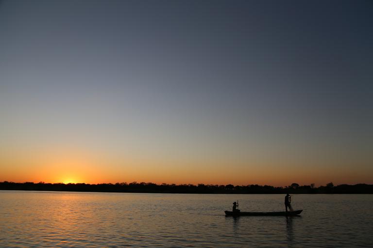 Keywords: sunset sol landscape against light sunrise summer holidays brazil nature farm river san francisco environment water rio fishermen casal fish networks minas fisherman boat canoe