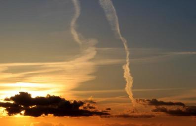 Keywords: sunset sun clouds dark clouds bright cloud contrail abendstimmung sky evening evening sky