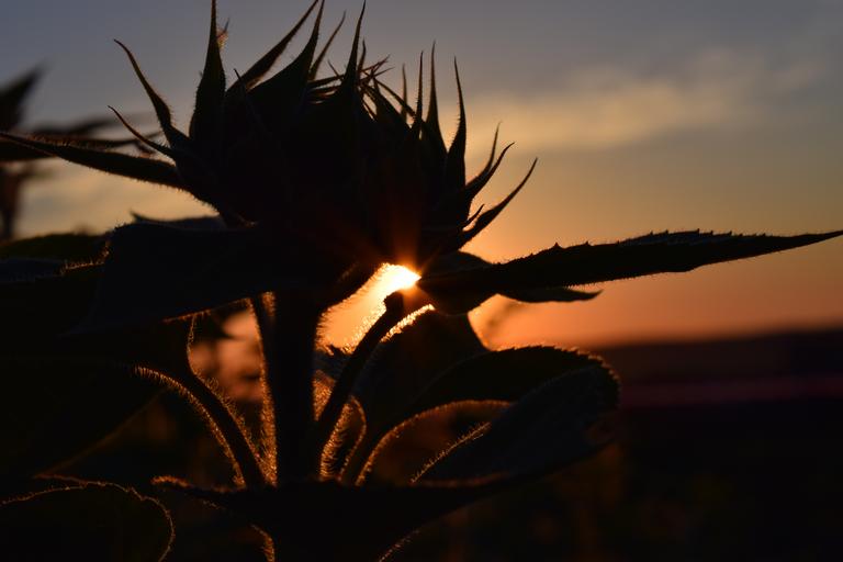 Keywords: sunset sun flower back light sky red evening contrast contours