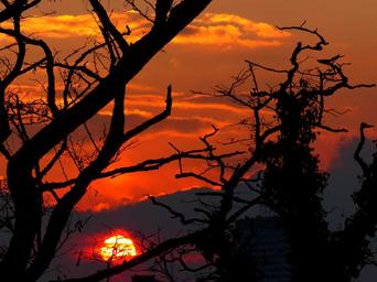 Keywords: sunset sun sky light burn glow silhouette back light tree trees clouds orange red