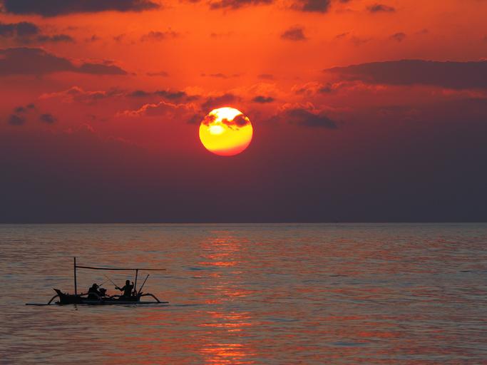Keywords: sunset sunrise afterglow evening sky clouds water sun morgenrot mood sky boats evening horizon sea bright red romantic fischer