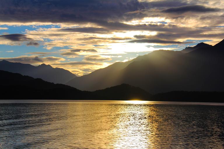 Keywords: sunset tranquil scenic view beautiful sea cruise te anau new zealand