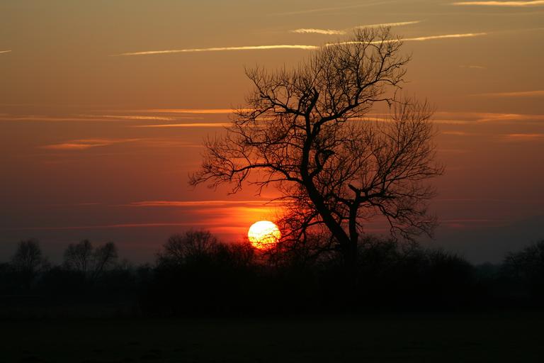 Keywords: sunset tree abendstimmung twilight sun dusk silhouette kahl landscape sunbeam evening sky afterglow mood evening lighting setting sun night sky orange atmospheric orange romantic back light gold