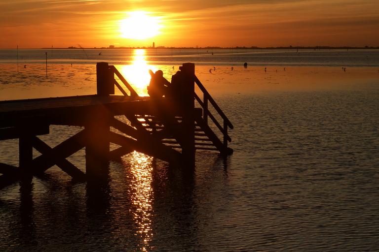 Keywords: sunset wadden sea north sea watts evening sky nordfriesland abendstimmung afterglow coast world natural heritage back light sea evening sun