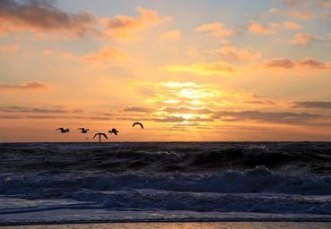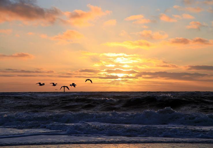 Keywords: sunset water sea abendstimmung mood sky orange romance afterglow beach clouds