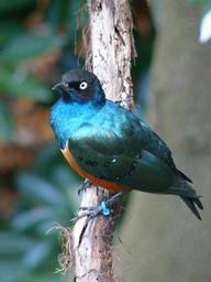 Keywords: superb starling lamprotornis superbus starling bird tree limb blue iridescent green red-orange red black beautiful