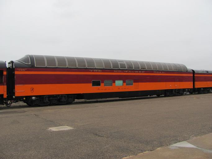 Keywords: Superdome Hiawatha.jpg en Skydome Hiawatha car of Twin Cities Hiawatha of Chicago Milwaukee and St Paul Railroad in the Chicago Milwaukee St Paul and Pacific Railroad color scheme de Kanzelwagen des Twin Cities Hiawatha der Chicago Milwaukee and St Paul Railroad n den Farben der Chicago Milwaukee St Paul and Pacific Railroad own Reinhard Dietrich Okt 2012 Cc-zero Super Dome cars |