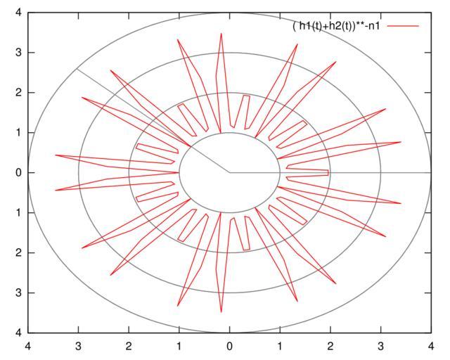 Keywords: Superellipse gnuplot.svg Eine Superellipse mittels Gnuplot erzeugt own Max Mustermann A1000 <span class signature-talk ></span> Superformula Created with Gnuplot <code> set polar set grid polar 15 a 1 b 1 m 73 n1 2 n2 2 n3 8 h1 t abs cos m/4 t /a n2 h2 t abs sin m/4 t /b n3 set trange -pi pi plot h1 t +h2 t -n1 </code> Cc-zero |