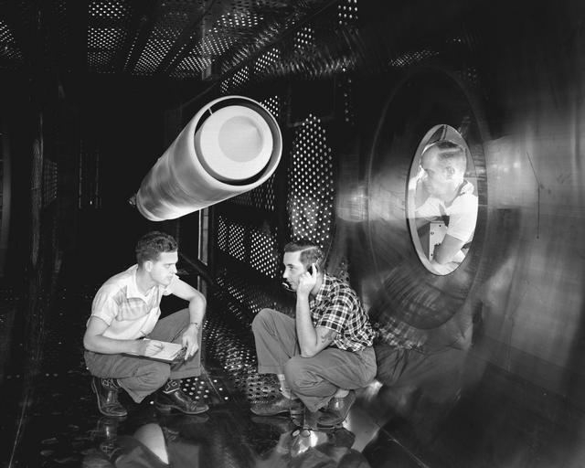 | Keywords: naca nasa nasa glenn research center nasaglennresearchcenter wind tunnel windtunnel aeronautics 1957 blackandwhite monochrome surreal black and white Description (August 31, 1957) 8ft x 6ft Supersonic Wind Tunnel Test-Section showing changes made in Stainless Steel walls with 17 inch inlet model installation. The model is the ACN Nozzle model used for aircraft engines. The Supersonic Wind Tunnel is located in the Lewis Flight Propulsion Laboratory, now John H. Glenn Research Center Description (August 31, 1957) 8ft x 6ft Supersonic Wind Tunnel Test-Section showing changes made in Stainless Steel walls with 17 inch inlet model installation. The model is the ACN Nozzle model used for aircraft engines. The Supersonic Wind Tunnel is located in the Lewis Flight Propulsion Laboratory, now John H. Glenn Research Center |