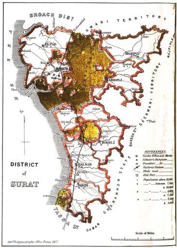| Keywords: Surat.jpg en Map of Surat district 1855 http //www flickr com/photos/britishlibrary/tags/sysnum000403057 Gazetteer of the Bombay Presidency 1896 by James M Campbell Various other versions PD-old-70-1923 Uploaded with UploadWizard Gazetteer of the Bombay Presidency 1896 Surat district |