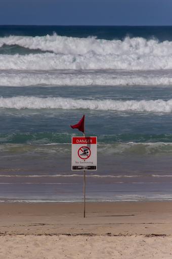 Keywords: surf beach danger sign rough sand sea wave breaker white gold coast australia