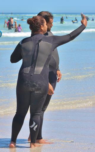Keywords: surfer wetsuit lovers selfie beach sea ocean
