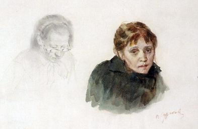| Keywords: Surikov Grushetskaja.jpg ru Этюд В И Су икова « аб осок головы ста ушки в очках» «Голова женщины в очках» 1883 г Бумага аква ель г афитный ка андаш 22 x 32 см <br /> Сп ава Елизавета Константиновна а ина к ёстная мать ста шей доче и Су икова Слева Евгения Ивановна Г ушецкая ста ушка жившая у а иной 1883 http //www art-catalog ru/picture php id_picture 2174 art-catalog http //az lib ru/s/surikow_w_i/text_0010 shtml Письма В И Су икова 1906 г Коммента ии к письмам Коммент 82 ссылка 3 Creator Vasily Surikov PD-old-auto 1916 Uploaded with UploadWizard Portraits by Vasily Surikov House of Grushetsky |