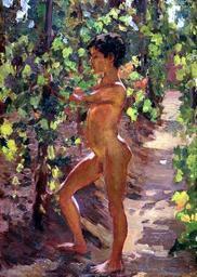 Keywords: Susan Watkins (1875-1913), Study for Boys picking grapes at Capri (ca. 1906), 2.jpg ~ 1906 oil on canvas Overall 14 x 10 1/8 in 35 6 x 25 7 cm Overall Frame 18 3/4 x 14 3/4 in 47 6 x 37 5 cm Institution The Chrysler Museum Norfolk http //www lesdiagonalesdutemps com/article-susan-105131214 html PD-old-auto 1913 Susan Watkins Paintings of Capri Paintings of nude boys Paintings of nude standing males Paintings in the Chrysler Museum of Art |