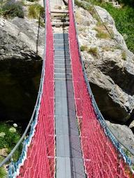 Keywords: suspension bridge bridge crossing river rope bridge ropes stretched depend away bridge construction shaky red