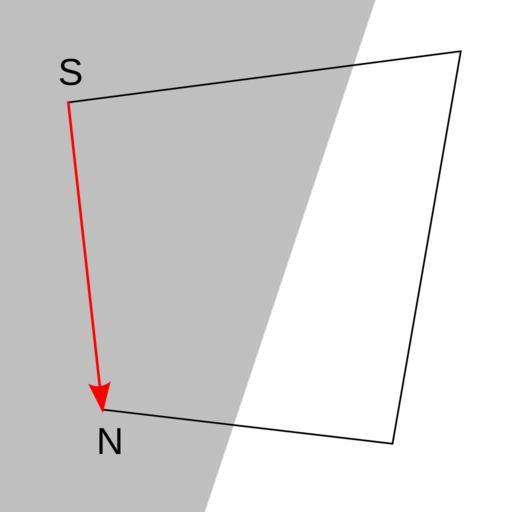 | Keywords: Sutherland-Hodgman caseA.svg Single step of internal loop of Sutherland-Hodgman clipping algorithm where certain edge of convex polygon denotes halfpace grayed area -- inside Single edge SN of non-convex polygon per iteration is analyzed in this case edge S-N lies inside algorithm saves N vertex Own 2008-03-02 Wojciech Muła public domain Sutherland-Hodgman algorithm |