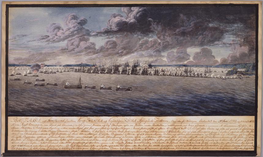 Keywords: Svensksund 9 juli 1790, S 1825.tiff Artwork Creator Johan Tietrich Schoultz sv Battaiile uti Svensksund Emellan Kongl Swenska och Kejserliga Ryska SkjärgÃ¥rds Flottorne 1803 Watercolors on paper Size mm 500 297 Institution Sjöhistoriska museet credit line place of creation Stockholm Battaiile uti Svensksund Emellan Kongl Swenska och Kejserliga Ryska SkjärgÃ¥rds Flottorne; Begynte för-Middag Klockan 3/4 9 Den 9de Julii 1790 och slutades D 10 de Do ¦ PD-old-auto 1896 Sjöhistoriska museet accession number S 1825 Sjöhistoriska museet Images from Sjöhistoriska museet Johan Tietrich Schoultz 18th-century paintings from Sweden Watercolor paintings Ships of Sweden Battle of Svensksund ImageNote 1 273 3611 7589 1052 8084 4845 2 BATTAIILE uti Svensksund Emellan Kongl SVENSKA och Kejserliga RYSKA SkjärgÃ¥rds-Flottorna; Begyntes för-Middagen klockan 3/4 9 Den 9de Julii 1790 och slutades Den 10de Dito Hans Majt Konungen var ibland pÃ¥ Cousinen En liten Holme stundom uti Dess Eschaloupe agter om Flottan under Battillen; i ackttagande och Ordres gifwande _ A Hemmenma Styrbjörn B Hemen Starkotter C Uddenma Ingeborg vilken under Slaget fÃ¥dt flere grundskott och blef äfwen 3 gongor i Brand skiuten; mÃ¥ste pÃ¥ aftonen Kl vid Pass 6 Den 9de Julii gÃ¥ utur Linien och sätta pÃ¥ grund vid SjÃ¥kholmen; D Uddenma Thorborg och E Cutter Briggen Alexander; jämte Gallärer En half-Gallärer 4 Mörsare Barquasser samt nogra Canon Slupar Jollar varaf en F Canon Slup förd af Ljutnant Hovenschöld farang i Luften; utgjorde Swenska Flottan Corps d'Armée; Commendérades af Öfwerste Ljeutnanten och Riddare Victor von Stedingk G Finska Briggaden bestÃ¥ende af 59 Canon Slupar BÃ¥tar och Jollar Commenderades af Öfwerste Ljeutnanten och Riddaren Hjelmstjärna; H Tyska Briggaden bestÃ¥ende Canon Slupar Jollar; voro placérade uti Sunden Ostwardt; varaf En Division tillika med Gallärer Jämtland skulle betäcka Svensksunds-HÃ¥let; Commenderades af Öfwerste Ljeutnanten och Riddaren Cronstedt I Bohuslänska Briggaden bestod af 60 Canon Slupar Jollar; varaf en Canon Slup förd af Ljeutnant LilljestrÃ¥le af flera grundskott sjönk vid K all folk blef bärgat; och en Canon Slup L förd af Ljeutnant Romell Sprang i luften M Gallären Calmar pÃ¥ vilken 24-pundaren sprungit mÃ¥tte gÃ¥ utur Linien _ N Ryska flottans avant Guardie; täknades utom Ett flytande Batterie 48 beväpnad fartyg vid ankomsten efter 3 ne timmars Slag befans högst 25 Retirera de andra Slagne; En sprang i Luften O Rysk Corps d'Armée; bestod 5 Fregatter och 9 andra Råå-Seglare utom den Linie som betäkte öppningarne och bestod af Cutters Bombarder Galljots Gallärer P Arrièr Guardiet Gallärer Canon Slupar No 1 Masala Holme 2 Koska Holme 3 Cousinen 4 KrÃ¥kskjär 5 KrÃ¥kskjärs-grund 6 KymmenegÃ¥rds Holme 7 Tjutinen 8 Sjukholm 9 Tallholm 10 Maijansari 11 Svensksunds-smÃ¥ Holmar 12 Kutsalöö 13 Läkmäsari 14 Sandholmar _ 53 Fiendtlige fartyg eröfrades och 26 fartyg af ; som vore uti blefvo Tagna ImageNoteEnd 1 |