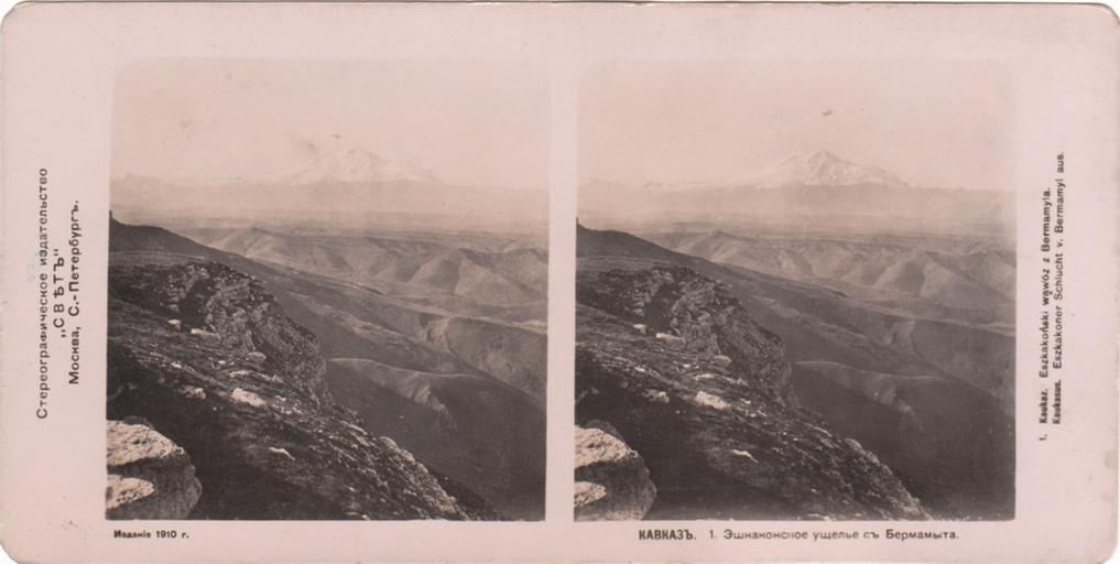Keywords: Svet. Caucasus. 001. Eshkakonskay canyon from the bermamyt.jpg en Eshkakonskay canyon from the bermamyt mountain ru Эшкаконское ущелье с бе мамыта 1910 Stereoscopic collection of the SVET publishing author PD-old-100 Uploaded with UploadWizard Caucasus Stereo cards by SVET publishing |