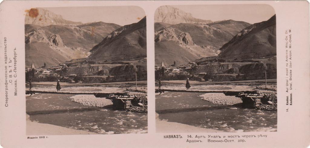 Keywords: Svet. Caucasus. 014. Aul Unal and bridge over the river Ardon.jpg en Aul Unal and bridge over the river Ardon ru Аул Унал и мост че ез еку А дон ka ს ფელი უ ალი და მდი არე არდ ის ხიდი 1910 Stereoscopic collection of the SVET publishing author PD-old-100 Uploaded with UploadWizard Caucasus Stereo cards by SVET publishing Towns and villages in Alagirsky District