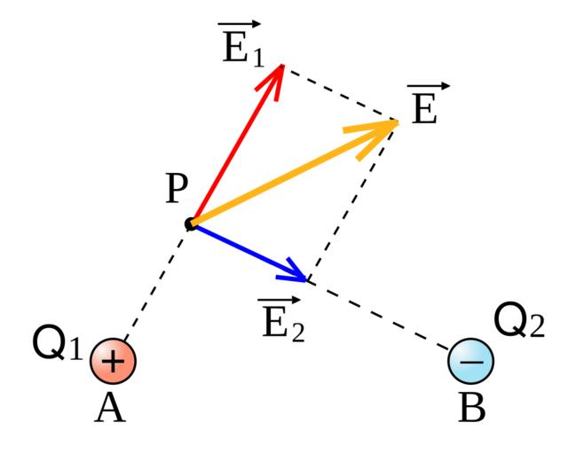 Keywords: 電場の重ね合わせ.svg ja 電場の重ね合わせ 2016-01-19 own すじにくシチュー other versions cc-zero Electric fields around charges Electromagnetic field