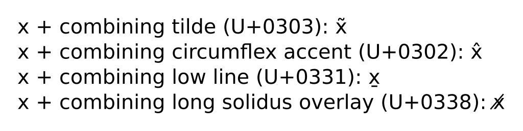View Original: | SVG with combining diacritical marks as unicode characters (test image).svg (480x94) | |||