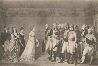 | Keywords: Svidanie imperatora Alexandra 1802.jpg ru Свидание импе ато а Александ а I с ко олем и ко олевой п усскими в емеле в 1802 году С г авю ы Вольдта сделанной с ка тины Делинга Обложка en Alexander I Czar of Russia meeting King Frederick William III and Queen Louisa in Memel 1802 de Alexander I Kaiser von Russland und der König Friedrich Wilhelm III mit der Königin Luise in Memel 1802 Scan from К Шильде Импе ато Александ Пе вый Его жизнь и ца ствование Т II С -Пете бу г 1897 Printed 1897 scanned 2010 Делинг Вольдт scan by Alma Pater <span class signature-talk >talk</span> 13 51 23 January 2010 UTC PD-Art Alexander I of Russia in engraving Friedrich Wilhelm III of Prussia 1802 events 1897 engravings Alexander I of Russia in documentary paintings |