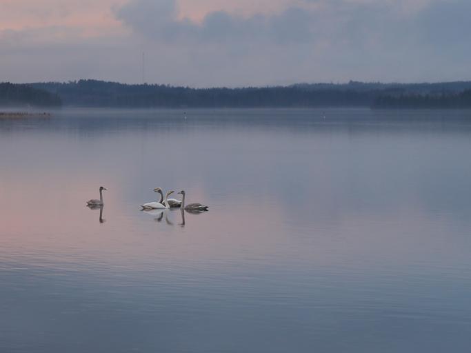 Keywords: swan evening peace calm beach nature autumn water cottage twilight silence countryside finnish lake sky scenic summer house landscape clouds in the evening beach cottage dark