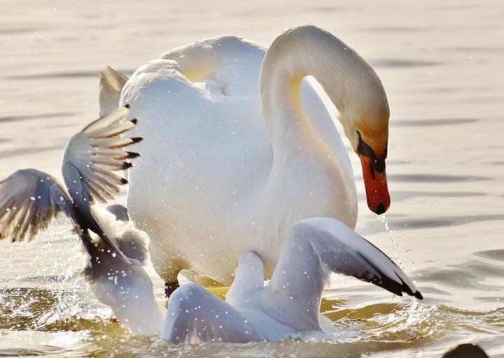 Keywords: swan gulls dispute water lake constance animal world lake bird feather water bird plumage