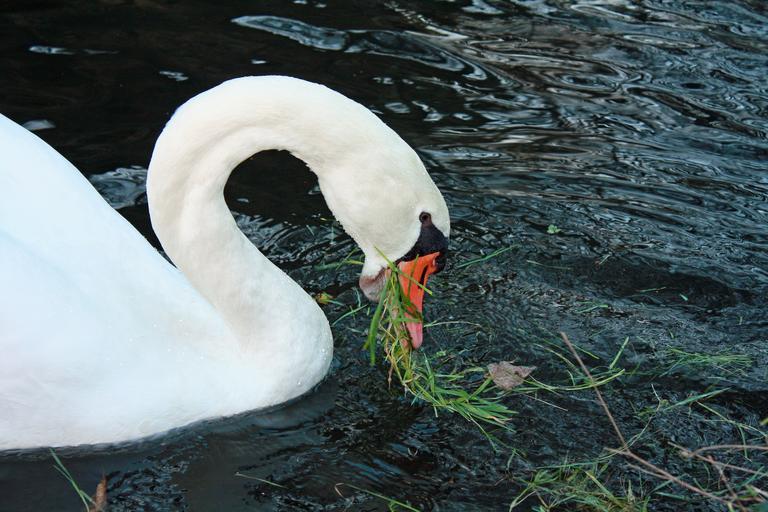Keywords: swan white bird feeding water aquatic vegetation aves fauna avifauna elegance close-up