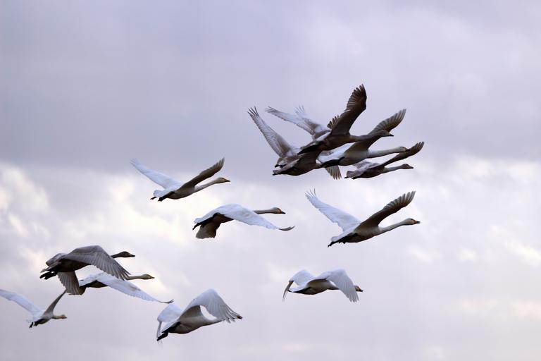 Keywords: swan whooper swan bird migratory bird swans birds sky flock of birds swarm water bird migratory birds